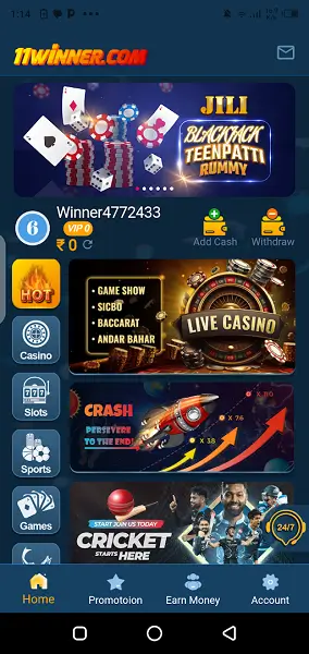 Download 11 Winner, a genuine betting and casino gaming platform for Android Smartphones and Tablets